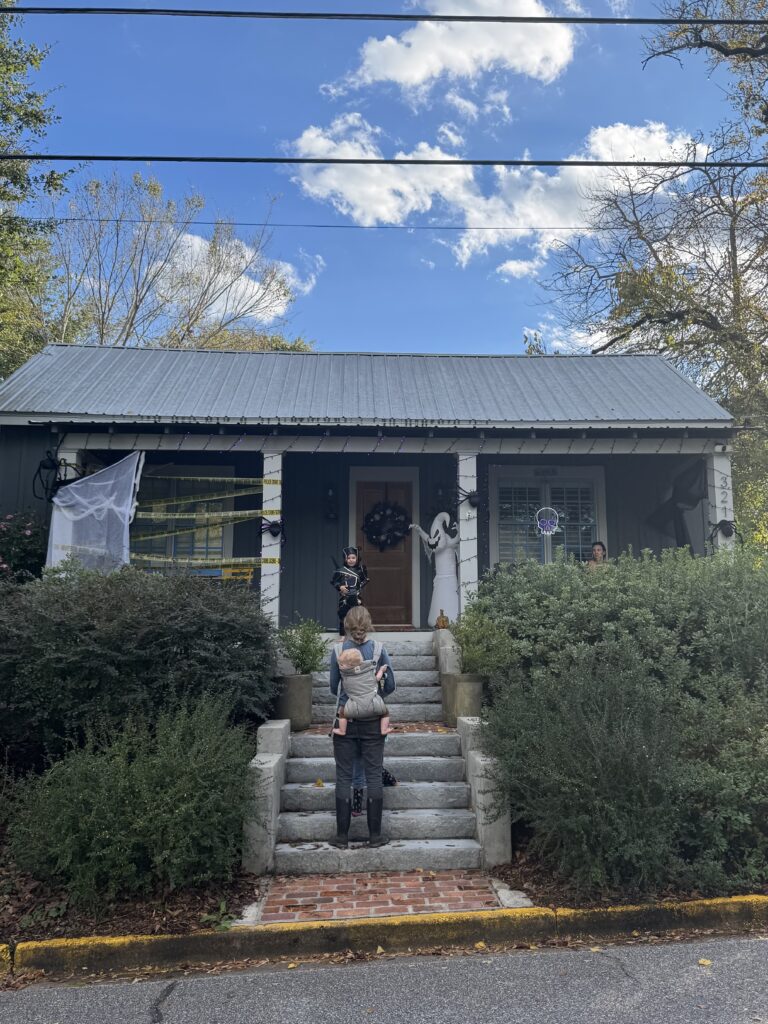 Derrick’s daughter sold apple cider on the driveway, and his son sat on the porch watching the band’s monitor levels.