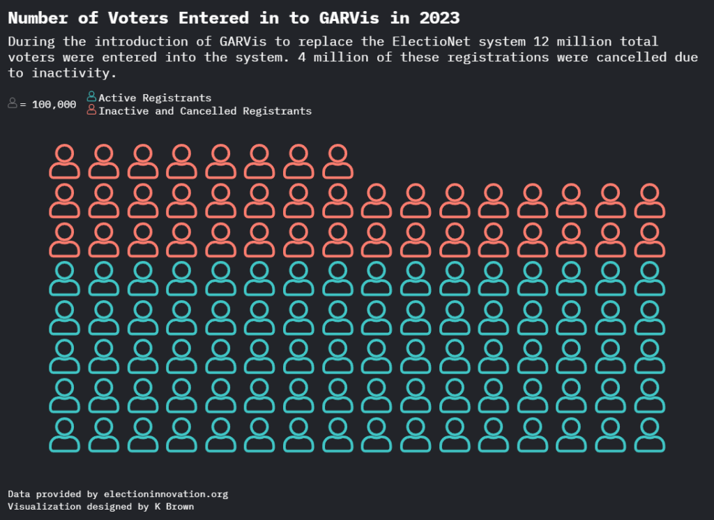 Secretary of State Brad Raffensperger introduced Georgia Registered Voters Information System, or GARViS, in March 2023. This system provided a database for elections officials showcasing voter information, including status, reasons for vote denial and voting method.