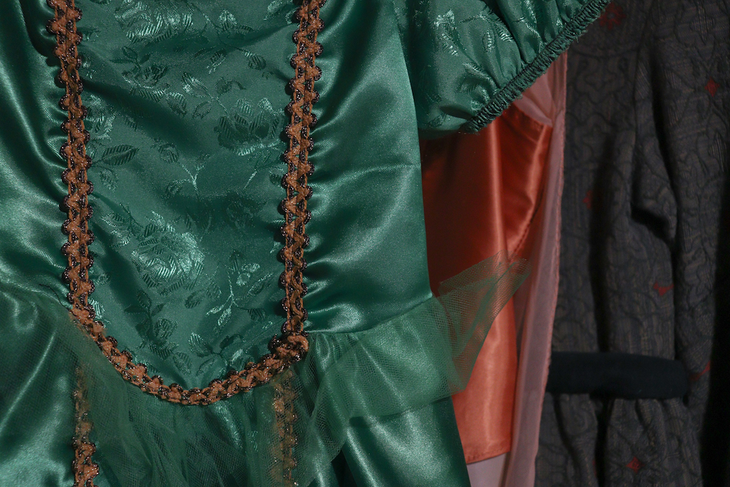 A children’s princess costume hung among other costume choices next to the ticket office at ALPs in Athens, Georgia, on Saturday, Feb. 9, 2019. “Theater kids are not the top of the high school food chain, typically, or middle school, and this [ALPs] is where they come, and they are amazing here, and they know it,” Chris Cestaro said. They know they’re amazing, and that’s what we want for them.” (Photo/Mary Martin Harper)