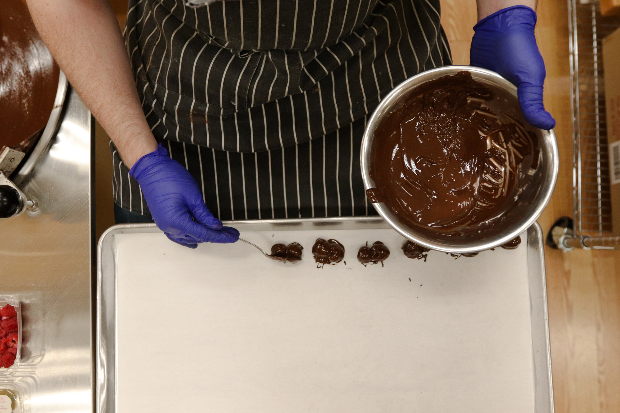 Robert Heflin, 22, a candy maker at Paul Thomas Chocolates, makes a batch of candy at the store on Sunday, March 31, 2019, in Dahlonega, Georgia. Heflin has been making chocolate at the store for two years but plans to transition into the real estate business with his parents after finishing his psychology degree at the University of North Georgia at Dahlonega. (Photo/Gabriella Audi, www.gabbyaudi10.wixsite.com/mysite-1)