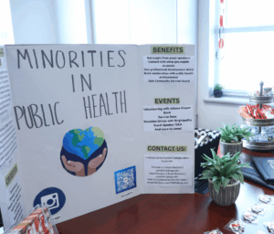 A poster for the Minorities in Public Health Club features information about the club at a networking event on Thursday, Sept. 4, 2025 at the Ramsey Student Center in Athens, Ga. The event had snacks, stickers and information available for its attendants. (Photo/Savannah Celeste Scott)