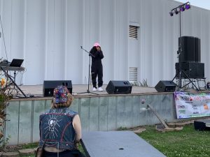 A member of the community watches Convict Julie perform at Athens Pride Festival at Terrapin Beer Co. in Athens, Georgia on Nov. 13, 2021. (Photo/Autumn Sanford)