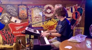 Owen Hite jams on the keyboard with the rest of the band to the song, “Valerie” by Mark Ronson at The Roadhouse in Athens, Georgia on the night of Nov. 18, 2021. (Photo/Caroline Ballard)