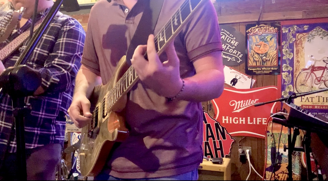 Kolby Keim plays the song “Valerie” by Mark Ronson on the guitar on the night of Nov. 18, 2021 at The Roadhouse in Athens, Georgia. (Photo/Caroline Ballard)