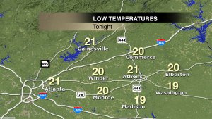 Expect low temperatures tonight well below freezing